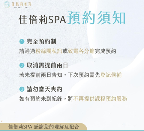 感謝您選擇佳倍莉SPA進行放鬆與舒壓之旅