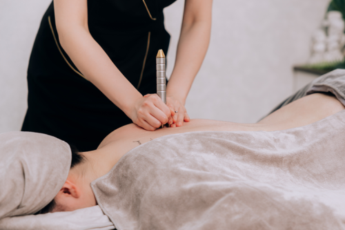 使用特殊負壓儀器,利用真空吸引原理,針對體內累積的熱氣、燥氣、乳酸、毒素做代謝,做完可藉由出痧狀況了解背部經絡的問題,較瘀塞嚴重的地方會是「葡萄痧」,一般勞累的地方只會呈現淡淡的紅痧,若可以連續每個月操作一次,即會發現痠痛改善同時痧症也慢慢變淡。